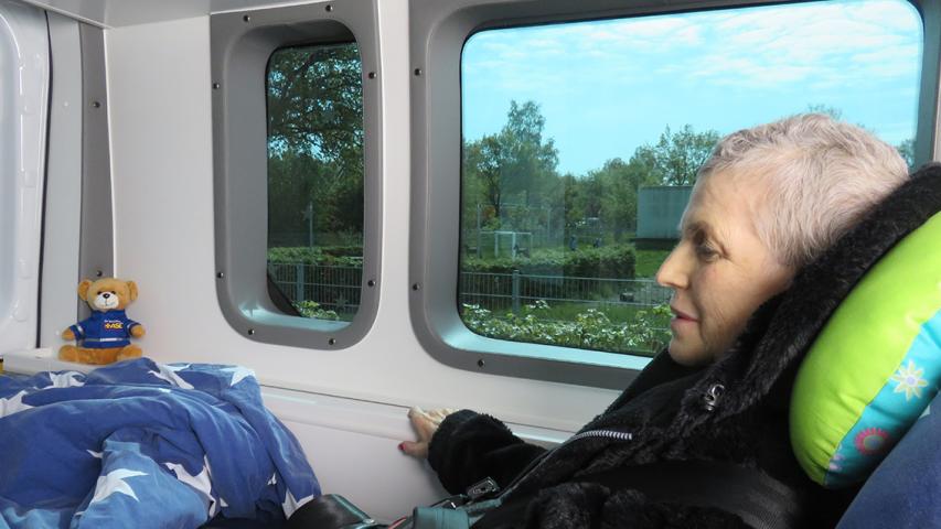 Unsere Wunscherfüller freuten sich sehr, ihren Fahrgast immer häufiger lächeln zu sehen. Am Ende merkten sie, dass Frau B. erschöpft, aber auch sehr glücklich war, noch einmal Normalität erleben zu dürfen. Nach eigener Aussage hatte sie einen wundervollen Tag.