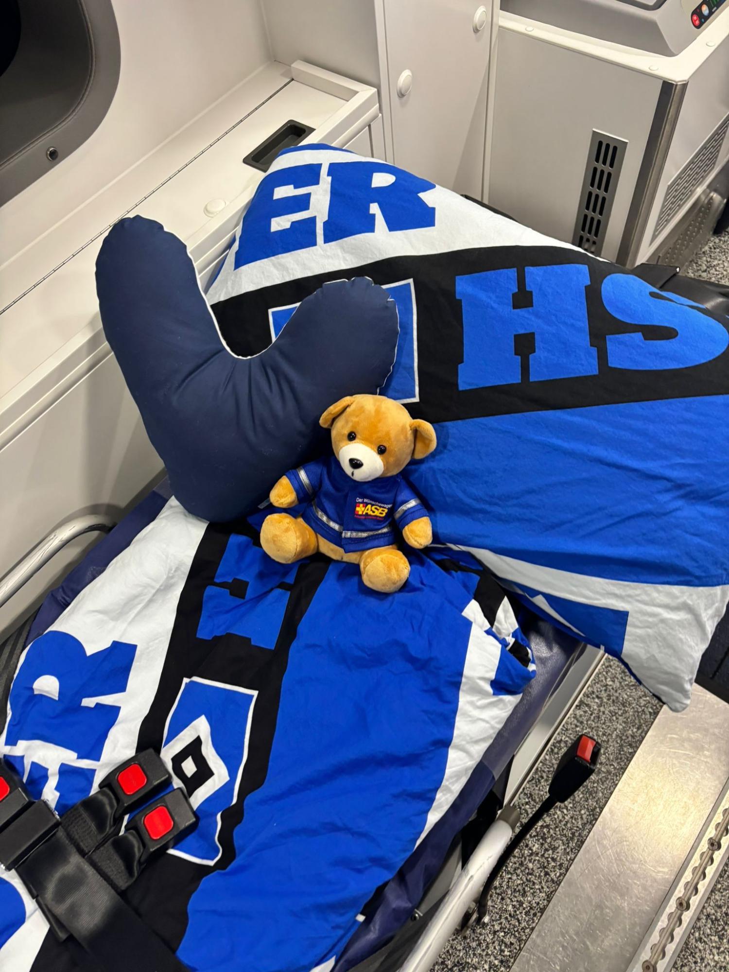 Kurz vor Spielbeginn gab es noch eine Überraschung für unseren Fahrgast: Er bekam einen ehemaligen Stadionsitz mit den Unterschriften der Mannschaft. Diese Überraschung war sichtlich gelungen.