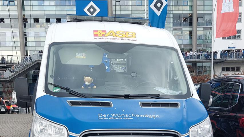 An diesem Morgen sollte die Fahrt nach Hamburg in das Volksparkstadion zum Fußballspiel SV gegen Elversberg gehen. Fröhlich wurden wir von den Mitarbeiter:innen des Albertinen-Hospiz in Norderstedt begrüßt. Sie führten uns zu einem echten HSV-Fan und seiner Frau, die uns mit strahlenden Augen begrüßten. Sie freuten sich sehr, dass der ASB den Wunsch von Herrn M. erfüllen konnte.