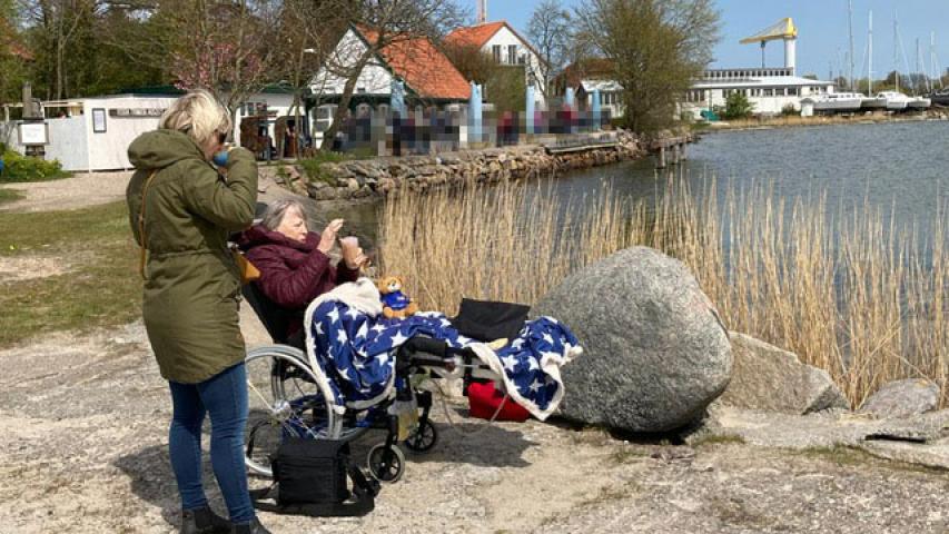 Es gibt viele „Wünschewagen-Phänomene“, eins davon ist die gute Zusammenarbeit der Ehrenamtlichen untereinander. Patrick parkt am Hafen, bereits beim ersten Aussteigen funktioniert alles mit uns und dem ganzen Drumherum prima. Der Rollstuhl lässt sich gut bewegen, auch wenn mir im Laufe des Tages klar wird, dass Kappeln ziemlich hügelig ist. Und, dass es einiges gibt, was ich gar nicht weiß - zum Beispiel, wo der Rollstuhl gerechte Eingang des Fischgeschäfts ist.