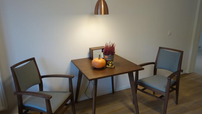 Die Wohnküche ist unser Gemeinschaftsraum. Er steht allen Menschen offen, die sich im Hospiz befinden. Er dient als Ort der Begegnung und bietet die Möglichkeit, Normalität und Alltag zu erfahren.